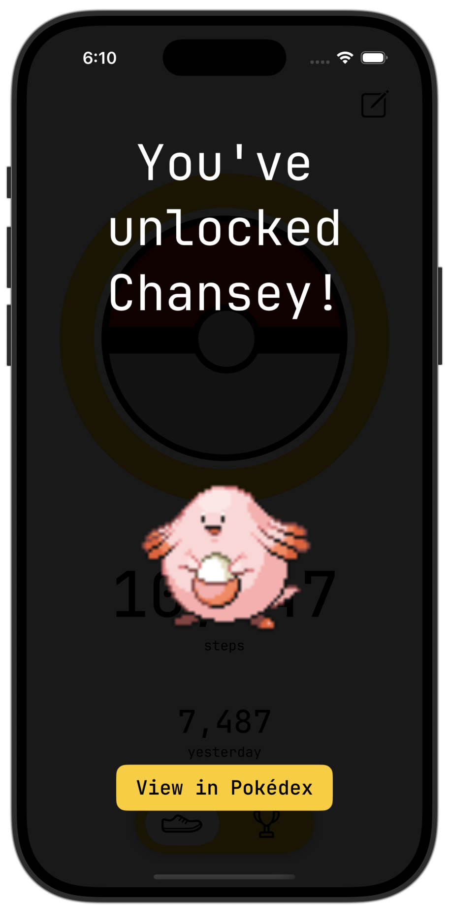 iOS app that turns routine fitness tasks like walking into a fun and engaging experience by meeting daily step goals to unlock the original 151 Pokémons.