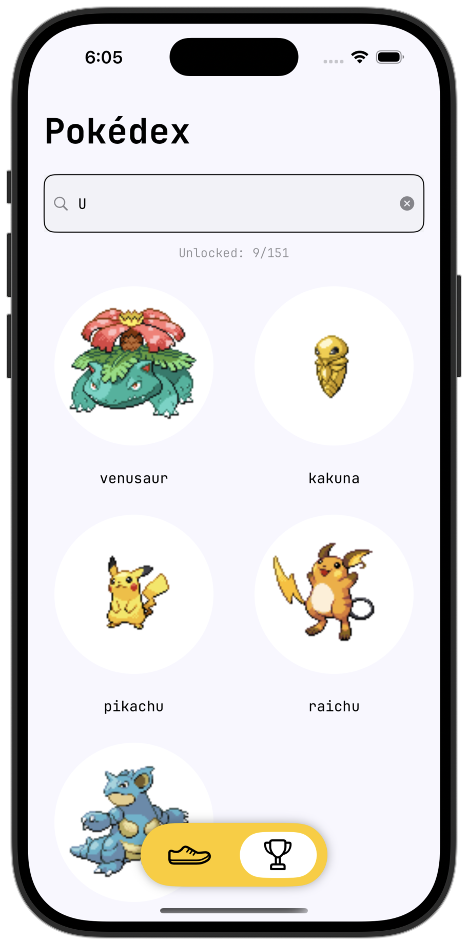 iOS app that turns routine fitness tasks like walking into a fun and engaging experience by meeting daily step goals to unlock the original 151 Pokémons.