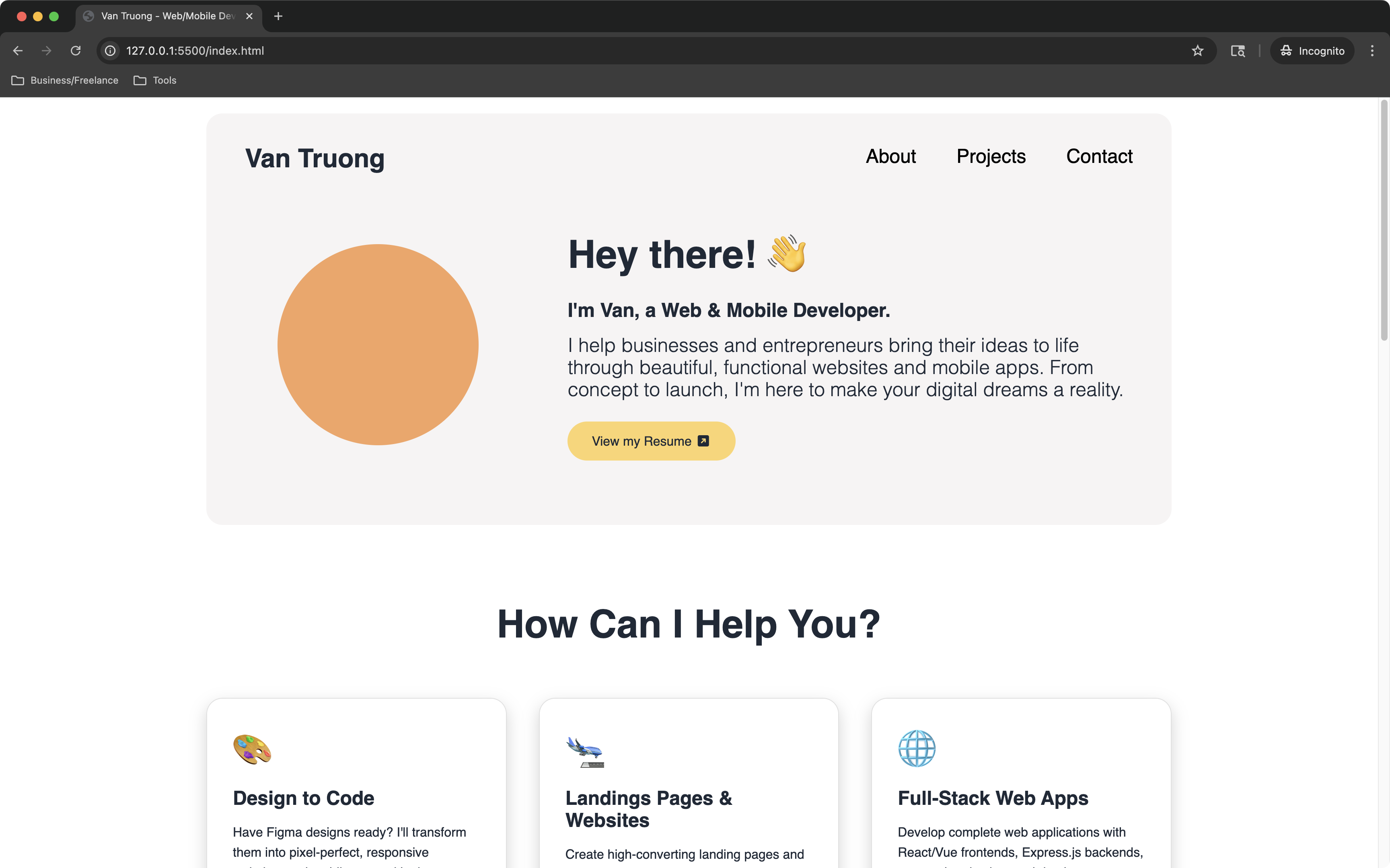 I help businesses and entrepreneurs bring their ideas to life through beautiful, functional websites and mobile apps. From concept to launch, I'm here to make your digital dreams a reality.